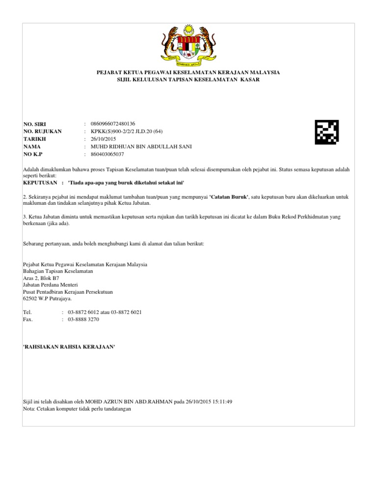 Sulit Borang Kpkk 11 Anm Gov My Sulit Borang Kpkk 11 Sulit Pejabat Ketua Pegawai Keselamatan Kerajaan Malaysia Borang Kpkk 11 Jabatan Perdana Menteri Borang Tapisan Keselamatan Pdf Document