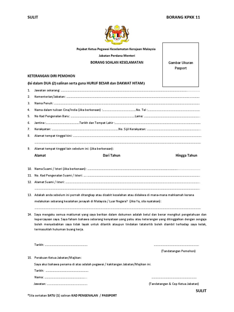 Borang Kelulusan Tapisan Keselamatan Kasar