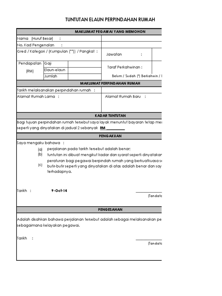 Borang Tuntutan Pindah Rumah Pertama