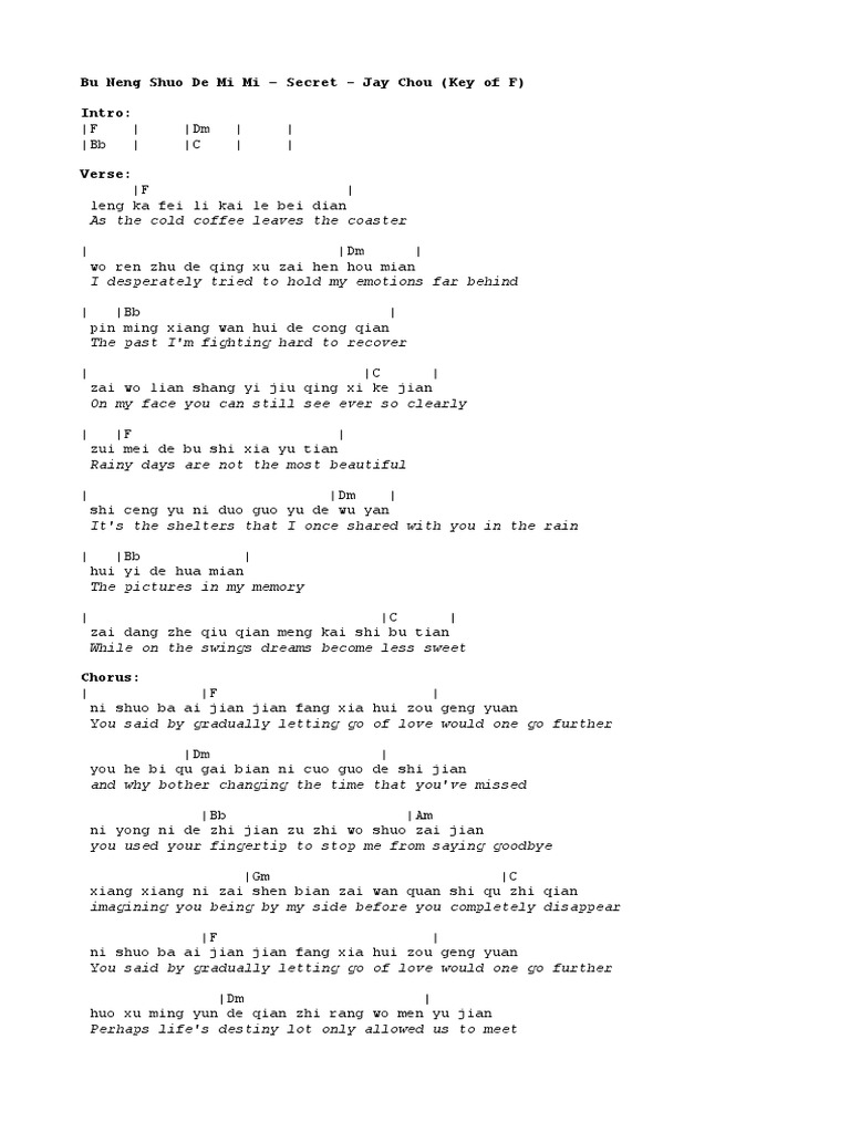 Jay Chou Secret Bu Neng Shuo De Mi Mi Pdf Document