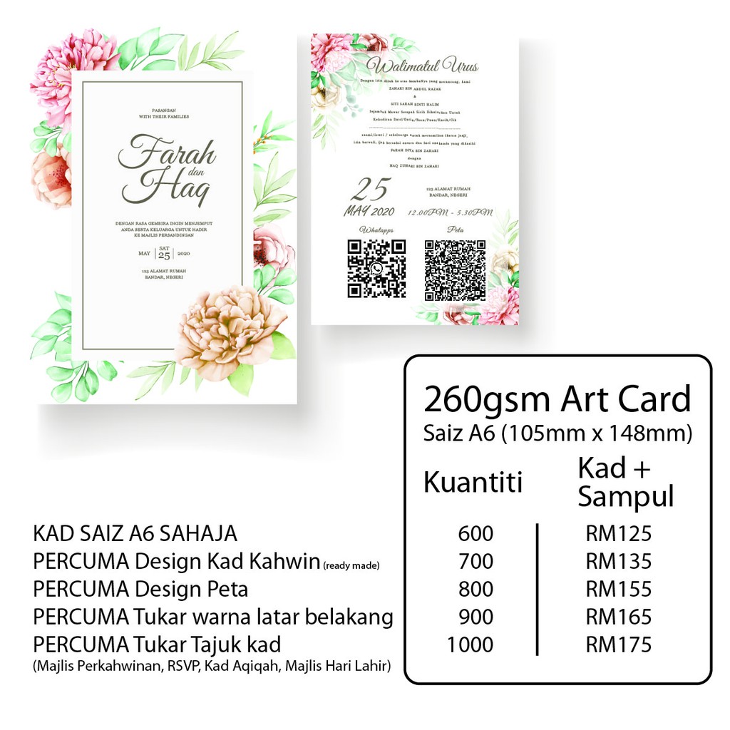 Kad Kahwin Saiz A6 Paling Murah 100 500pcs Kad Sahaja Free Design Kad Tebal 260gsm Artcard Full Color Shopee Malaysia