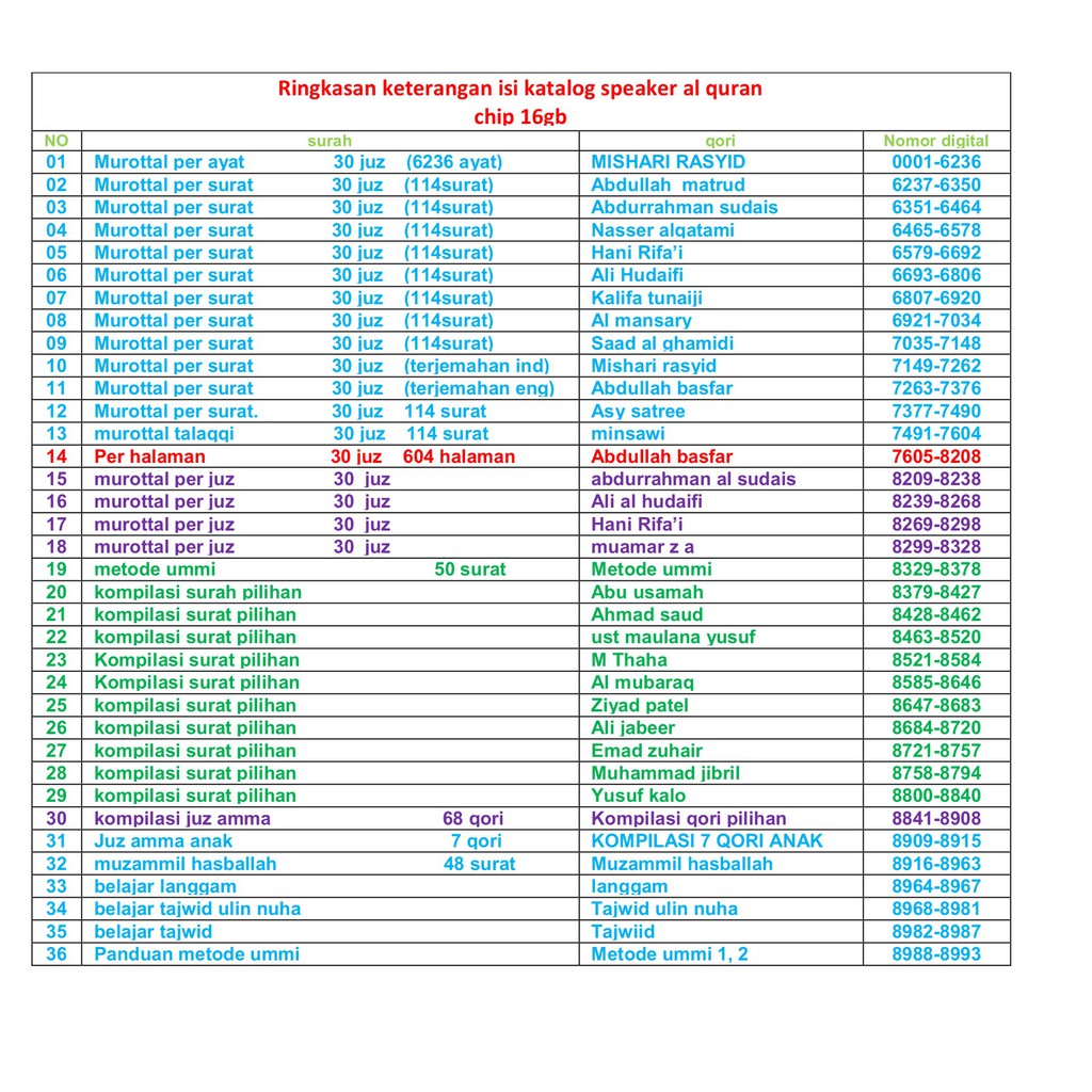 Daftar Isi Speaker Murottal Al Quran Pesan Hub 085720005358